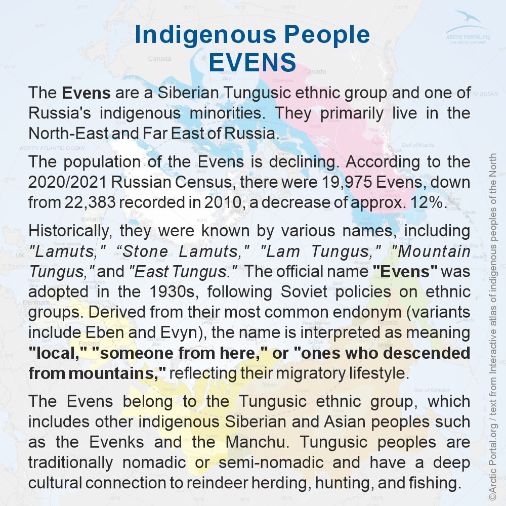 • 에벤족(Evens)은 시베리아 퉁구스계(Tungusic) 민족으로, 러시아 북동부 및 극동 지역에 주로 거주하는 원주민 소수민족이다.